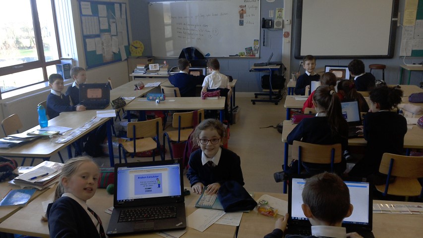 We recently purchased a laptop caddy for our school laptops. This allows the laptops to be moved easily to the different classrooms in the school. The children can use these for a wide variety of activities. See some photos below of our laptops in use.